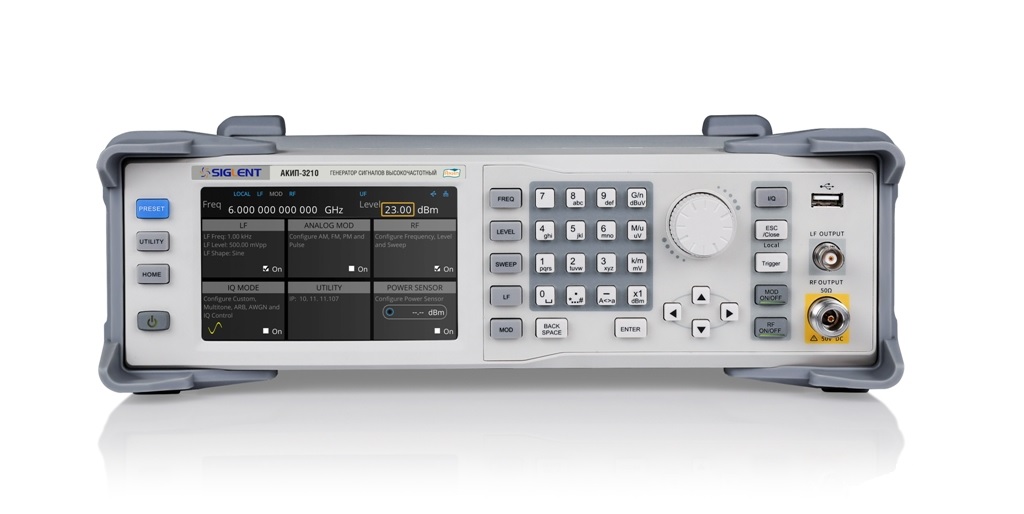 Настройки внутреннего генератора IQ сигналов | Смещение I/Q ±50 %, Усиление I/Q ± 4 дБ, Настройка угла квадратуры ±10° |