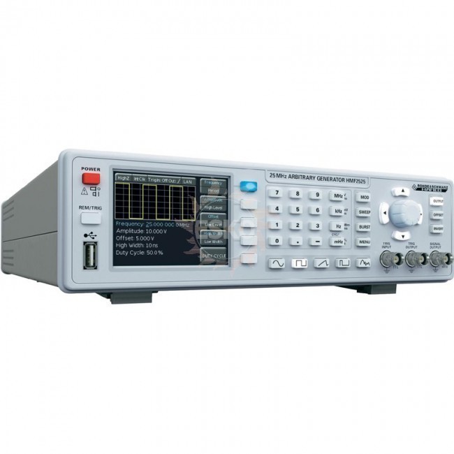 Главным различием моделей HMF2525 и HMF2550 является диапазон измеряемых частот: 25 мГц и 50 мГц соответственно. Типы сигналов: синусоидальный, прямоугольный, импульсный, треугольный, пилообразный, произвольной формы.