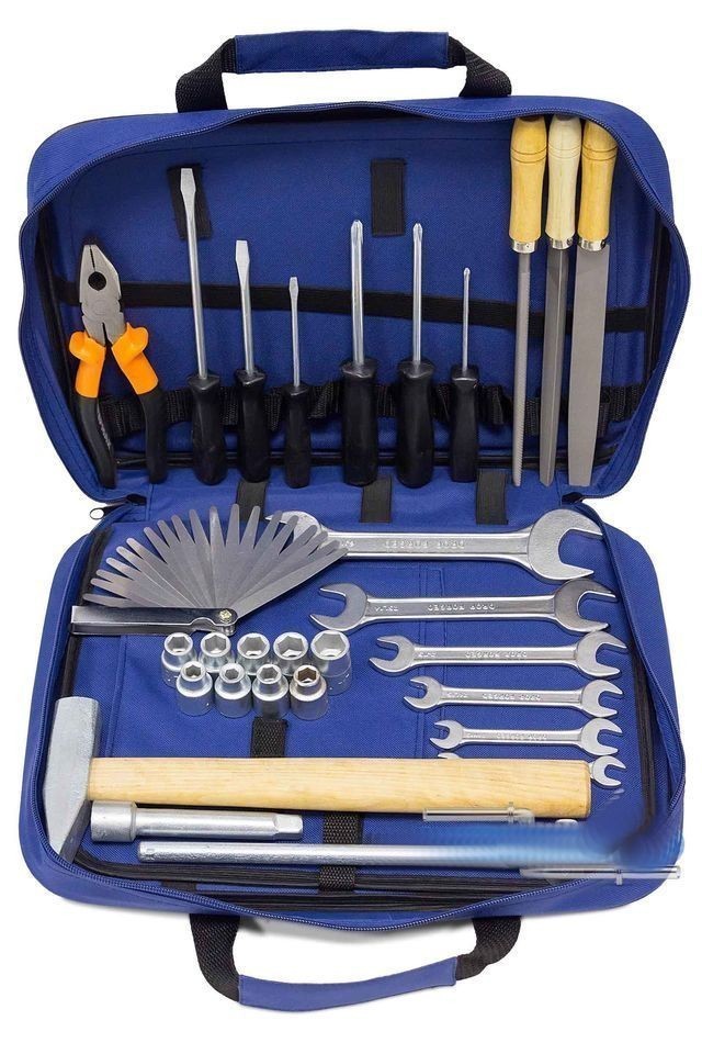 Набор инструментов для осуществления мелких ремонтных работ в дороге, гараже или автомастерской. Инструмент способен выдержать высокую нагрузку при частой эксплуатации.