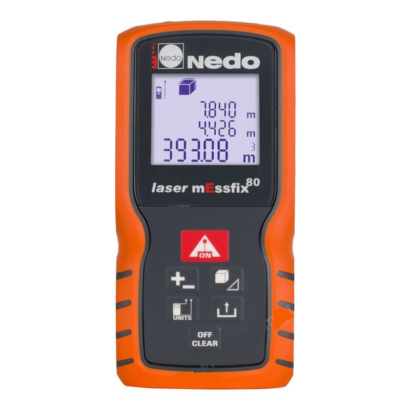 Nedo laser mEssfix 80 – это мощный, функциональный, компактный и полностью защищённый лазерный дальномер от всемирно известного немецкого производителя. C помощью laser mEssfix 80 вы можете мгновенно измерять расстояния от 5 сантиметров до 80 метров, время одного замера лежит в пределах от 0,5 до 2 секунд в зависимости от расстояния до объекта, его отражающих характеристик и угла измерений. При этом точность измерения составляет не ниже 1,5мм.