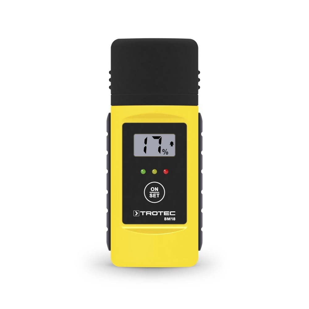 BM18 - легкий в использовании влагомер! Для включения BM18 и изменения всех настроек требуется всего одна кнопка. Для выбора режимов измерения (влажность древесины, влажность в здании) и температуры (°C, °F) нажмите и удерживайте кнопку примерно 3 секунды. В случае измерения температуры прибор показывает текущую температуру окружающей среды. В случае измерения влажности просто вставьте измерительные щупы на несколько миллиметров в измеряемый материал. Вы получите точные и быстрые результаты. При измерении в условиях недостаточного освещения одним нажатием кнопки активируется фоновая подсветка. Когда устройство не используется, оно автоматически отключается через 30 секунд, чтобы обеспечить длительное время автономной работы. Недостаточное напряжение батареи отображается на дисплее. В памяти BM18 имеется калибровочная кривая для измерения влажности различных типов древесины. Никаких дополнительных настроек для определения влажности древесины не требуется.